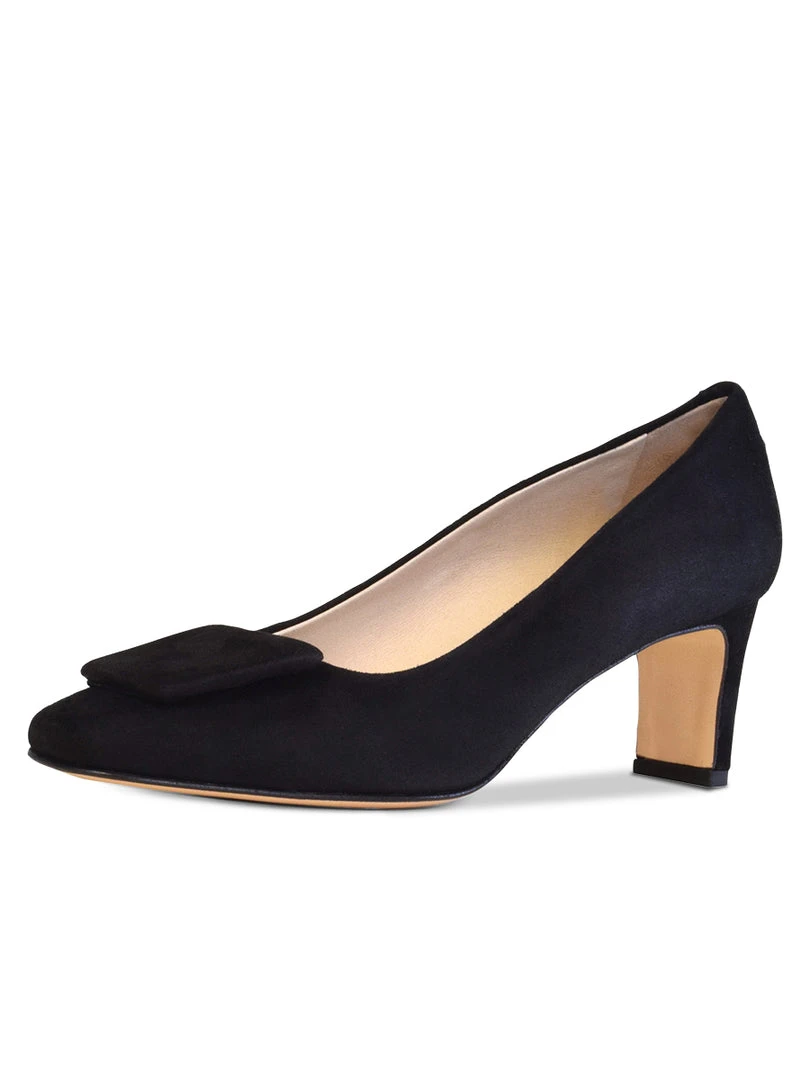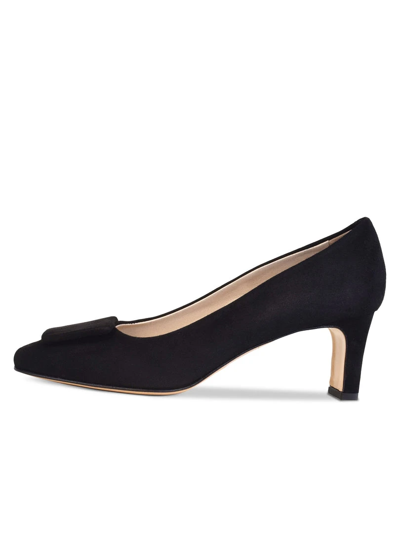 A classic mid heel comfort dress pump with a pendant detail. Soft insoles makes these suede pumps extra luxurious.ย The Amalfi by Rangoni collection is designed by generations of Italian shoemakers that have been handcrafting Italian footwear since 1937. The quality and craftsmanship is unparalleled.