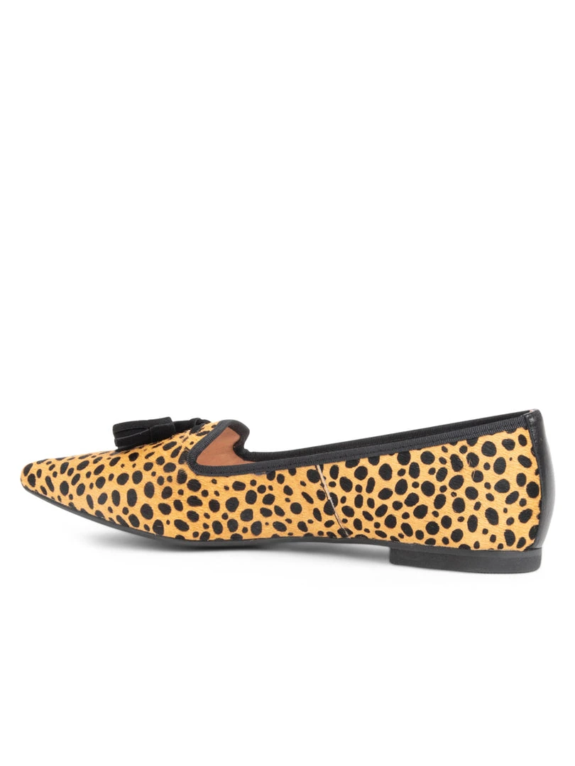 A sculpted pointed toe silhouette in luxe hair calf for a rich addition to your fall and winter shoe collection. Finished with a tassel detail and rubber sole, these shoes will carry you in style and comfort from day to night.