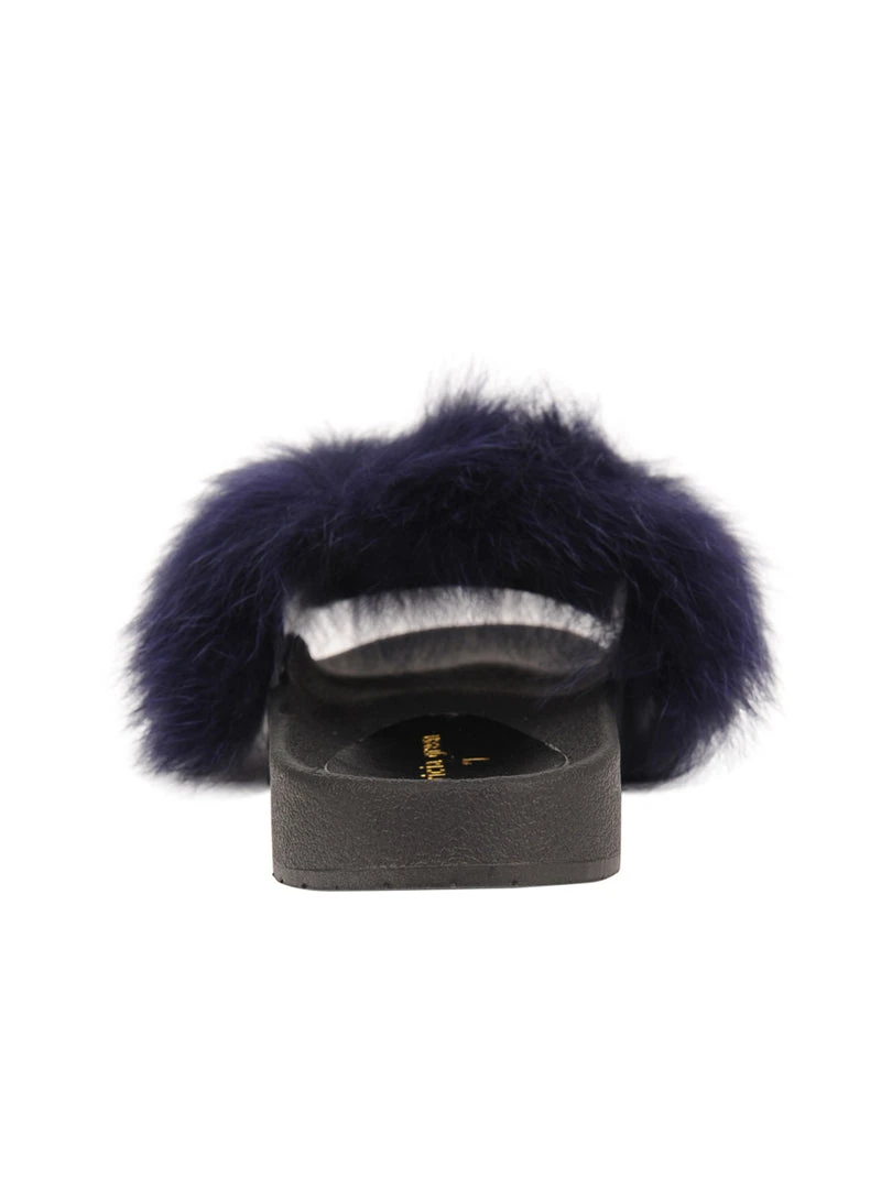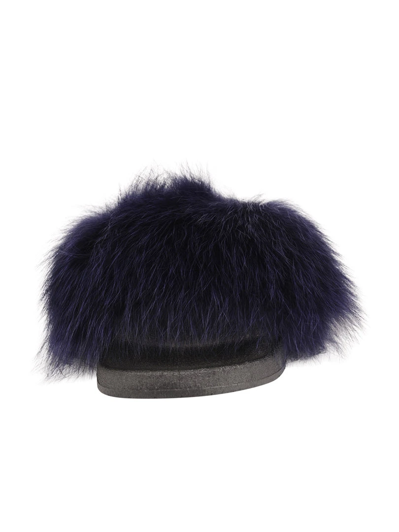 Lavish genuine fox fur shifts and sways atop a luxe slipper fashioned with a comfy molded footbed.