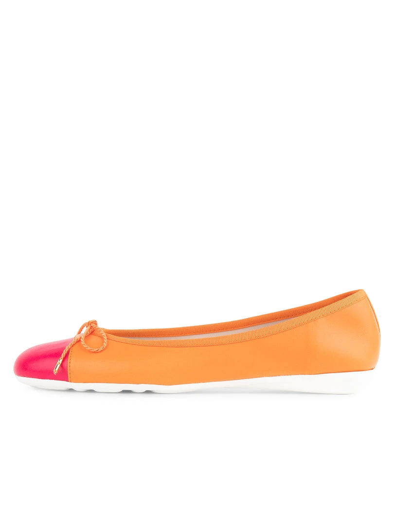 A gorgeous soft nappa leather ballet flat with contrasting leather cap toe. A fully padded footbed makes you feel like you are walking on clouds. A signature adjustable bow finishes this design with an adjustable cord for the perfect, secure fit.
