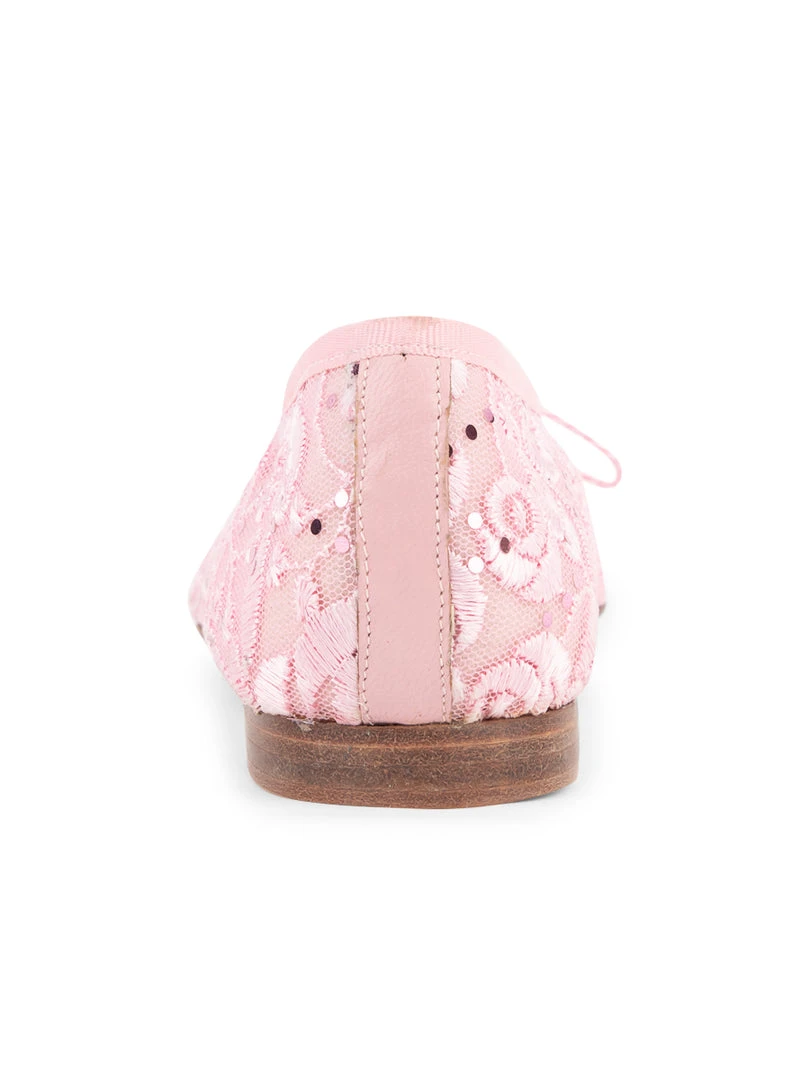 A luxurious embroidered floral lace flat for a chic alternative to heels. We love this ballet flat dressed up for an evening event, or worn to dress up a casual daytime outfit. Look no further for your newest evening shoe that transitions day to night in style! An adjustable cord bow tie allows for the perfect fit.