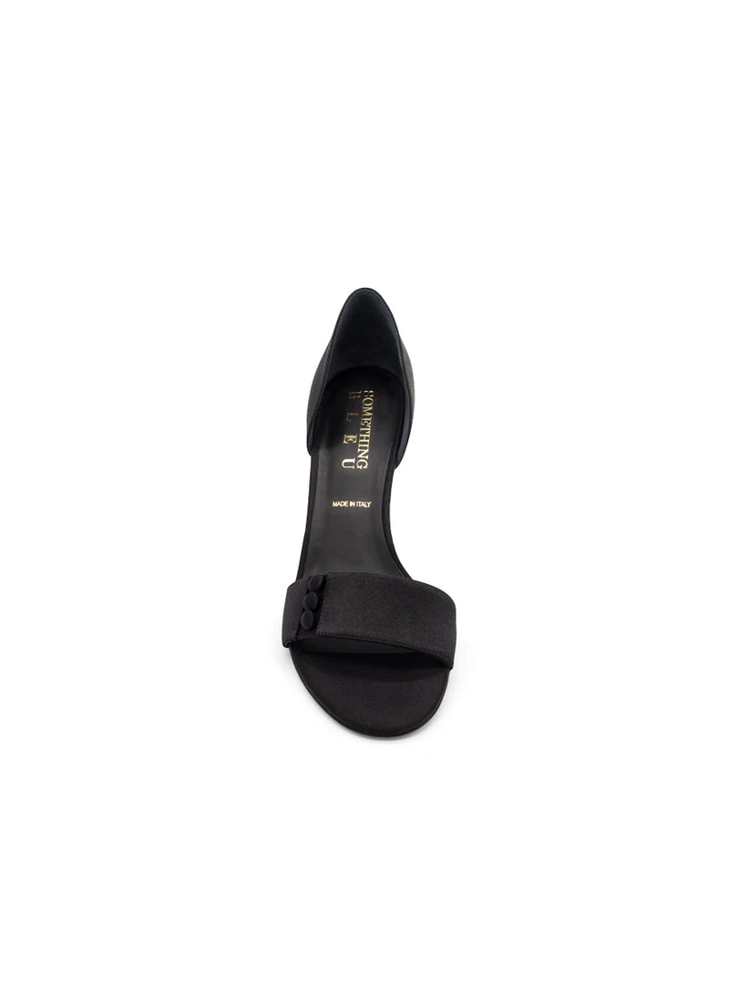 Charming satin sandals with exquisite button details. These delightfully chic heels have an everlasting look. Something Bleu shoes are handcrafted in Italy by lifelong artisans of handcrafted footwear. The materials used to make this shoe are sourced in Italy for impeccable quality and fit.