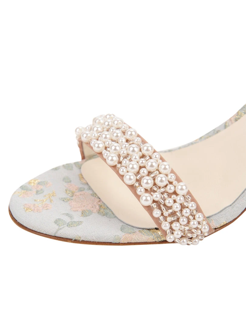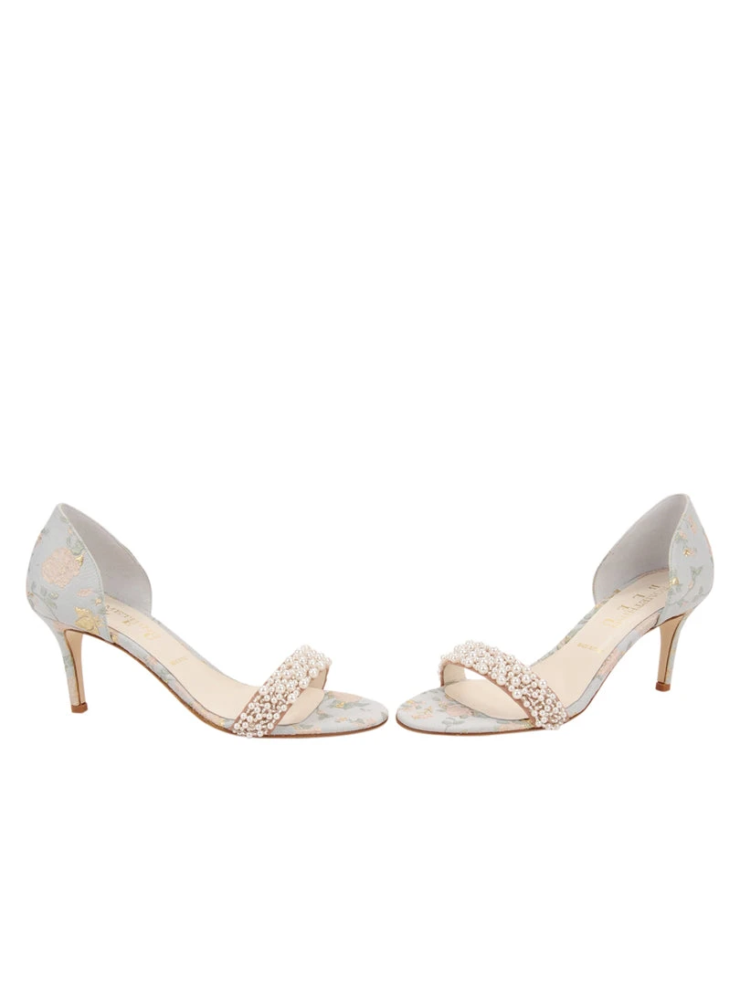 Encrusted with a lustrous array of the sea’s coveted gems, Something Bleu’s satin d’orsays are timelessly elegant.